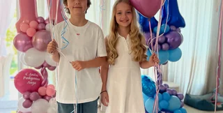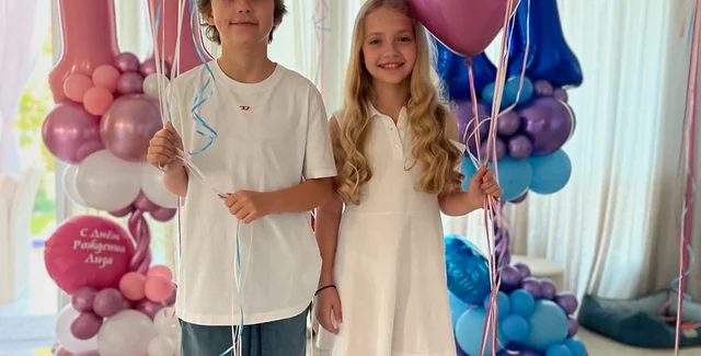 Брат і сестра, матір'ю яких є 75-річна співачка Алла Пугачова, фотографуються на тлі пірамід із повітряних кульок із цифрами 11. На другому фото Ліза і Гаррі в стильних підліткових образах позують під час фотосесії.