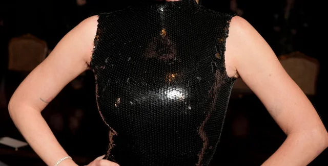 38-річна знаменитість мала шикарний вигляд у стильній обтислій чорній сукні з високим вирізом, усипаній паєтками. Свій гламурний образ Ліндсі доповнила чорним шкіряним тренчкотом зі структурованими підплечниками, класичними сонцезахисними окулярами і клатчем.