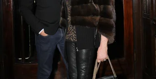 84-річна Джослін відвідала ресторан із 57-річним Кляйном. Для вечірнього виходу у світ знаменитість одягла прозорий топ з леопардовим принтом і шкіряні штани. Свій образ "жінка-кішка" доповнила укороченим кожушком з натурального хутра, чорними черевиками з відкритим носком на високих підборах і дизайнерською сумочкою. Вона позувала для фото, виблискуючи дорогими прикрасами: каблучкою з 26-каратним жовтим діамантом, яка ідеально поєднувалася з розкішною діамантовою підвіскою.