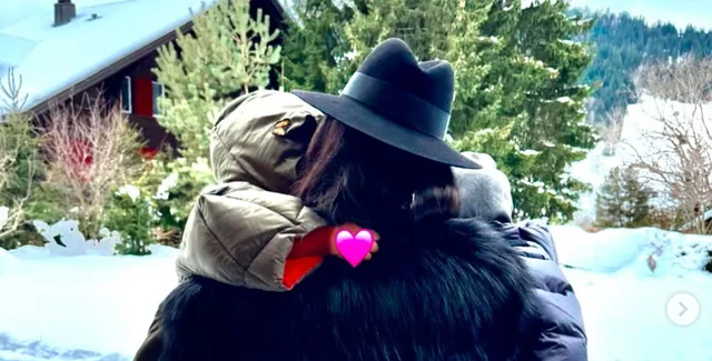 На фото вона позувала з трирічною донькою та однорічним сином, яких ретельно приховує від публіки. На свіжих знімках Кемпбелл традиційно приховала обличчя спадкоємців смайликами у вигляді сердечок. Наомі проводила час з донькою та сином у засніжених горах Швейцарії. Маленька спадкоємиця супермоделі навіть опанувала катання на лижах.