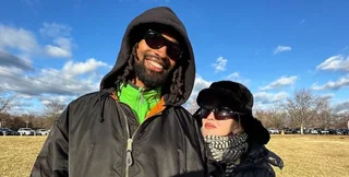 На одному знімку з каруселі Мадонна позувала біля свого бойфренда Акіма Морріса. Обранець зірки сцени постав у чорному шкіряному образі та кепці в тон. До вбрання він додав сережки та підвіску.