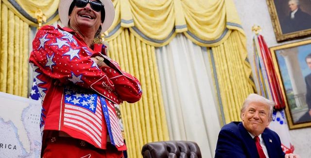 "Той, хто купував квитки на концерти в останнє десятиліття, можливо, 20 років — незалежно від ваших політичних поглядів — знає, що це головоломка. Це чудовий перший крок", — заявив артист, який з'явився до Овального кабінету в білому капелюсі, яскраво-червоному, блискучому костюмі зі стразами, прикрашеному зображеннями американського прапора, орлів і зірок, і сонцезахисних окулярах.