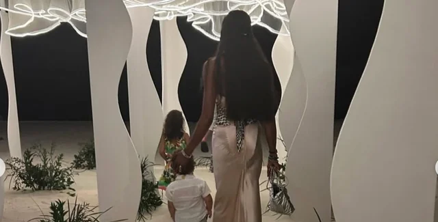 На фото зʼявилися як донька, так і син британської знаменитості. Наомі досі приховує їхні обличчя та не називає імен, проте з кадрів видно, що малюки помітно підросли. На одному зі знімків супермодель китайсько-ямайського походження тримала на руках доньку, споглядаючи за заходом сонця. На іншому Наомі з двома спадкоємцями прогулювалася у вечірню пору.