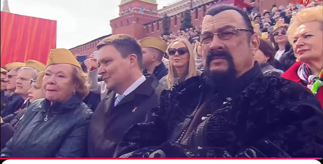 73-річний американський актор Стівен Сігал засвітився на військовому параді в Москві 9 травня.