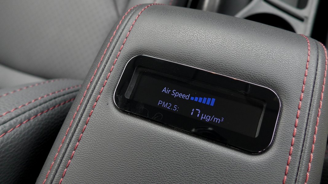 Здивувало також розташування підлокітника для водія, зрушеного занадто далеко назад. Мій лікоть ніяк не хотів там розміщуватися, хіба якщо примусово відвести плече — адже якщо підлокітник є, ним хочеться користуватися. Але, схоже, він був би зручний тільки дуже високому чоловікові. Зате на підлокітнику знаходиться маленький дисплей, призначення якого спочатку було для мене загадкою. Потім з'ясувалося, що він відображає показники роботи повітряних дефлекторів для заднього ряду.