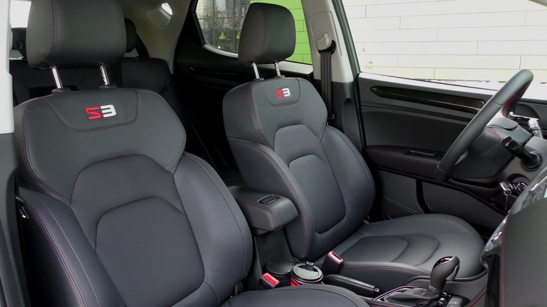 Набагато вдалішим виявився салон JAC S3 — дивно просторий для В-класу. Простір ніби "дутий" зсередини: поверхня центральної консолі простягається далеко вперед, утворюючи цілий "стіл", висока стеля, пристойна відстань між передніми сидіннями і більше ніж достатньо місця на задньому ряду — навіть для високих пасажирів. Незважаючи на сімейну спрямованість авто, в салоні вчуваються спортивні нотки: червона прострочка сидінь та керма, вишитий яскравий логотип S3 на спинках передніх крісел. Симпатично виглядають обробка консолі з екошкіри, сріблясті накладки і вставки під карбон. Видно, що дизайнери намагалися зробити інтер'єр не нудним і сучасним. Однак використана в оббивці крісел екошкіра сильно "дубіє" на холоді і підігрів сидінь дуже б не завадив, але цієї опції немає в жодній комплектації JAC S3.