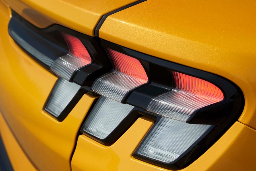 Візуально від стандартного електрокросовера Ford Mach-E новинки відрізняються сірими карбоновими вставками на решітці радіатора, що світиться емблемою, 20-дюймовими колесами й ексклюзивним забарвленням Cyber Orange, якого не знайти ні на жодному іншому автомобілі лінійки. Ну, і звичайно, гордими шильдиками GT.