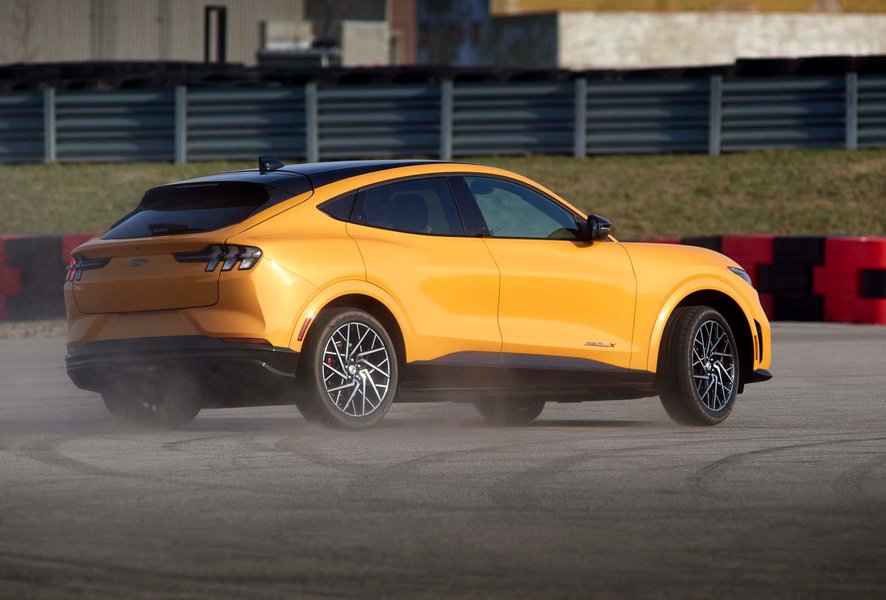 Повнопривідний Mach-E GT оснащується парою електромоторів із постійними магнітами, що сумарно розвивають 480 кінських сил і 814 Нм крутного моменту. До першої "сотні" кросовер прискорюється за 3,8 секунди. Запас ходу на одній зарядці сягає 402 км. До речі, класичне купе Mustang Mach 1 із бензиновим двигуном пропонує менше "конячок".