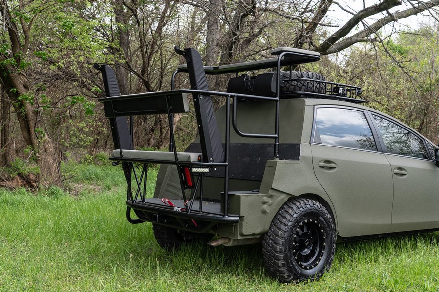 Спочатку Toyota Prius втратив задню частину кузова — на місці багажного відсіку обладнали майданчик із лавкою. Там же встановлені ящики для зберігання рушниць і карабінів. А на даху з'явився багажник із запасним колесом і додаткова світлодіодна "люстра".
