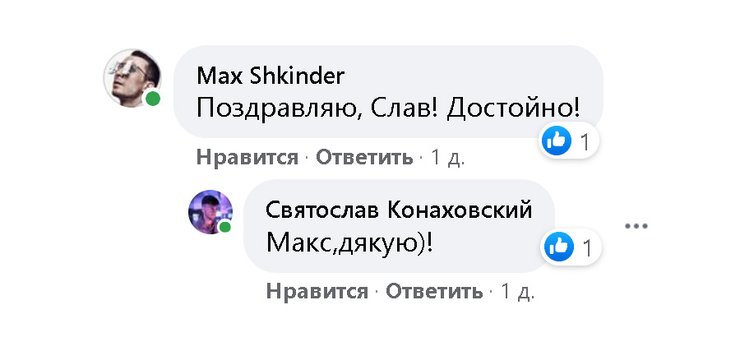"Вітаю, Слав! Достойно!" — написав Максим.