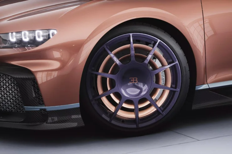 А ось можливість налаштувати під себе видимі через скло в капоті фрагменти двигуна W16 (наприклад, клапанні кришки) — це вже цікаво. У "стандартній" комплектації Bugatti вони сріблясті, але можна вибрати варіант з полірованого алюмінію або хромірування. Цікаво, що сам автовиробник не рекомендує вибирати варіант полірованого алюмінію, адже той швидко тьмяніє від високих температур, також на ньому видно всі сліди від технічних рідин.