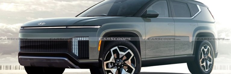 Дизайн Hyundai Seven обіцяє бути дуже нестандартним – із піксельною оптикою та діодною смугою на всю ширину кузова спереду. За розмірами кросовер більший за Hyundai Santa Fe, але компактніший, ніж Palisade.