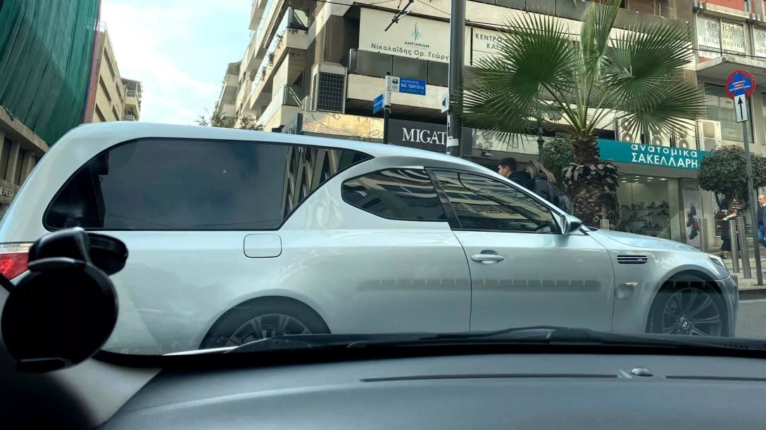 В Афінах помітили незвичайний катафалк на базі зарядженого седана BMW M5 (E60). Його дизайн вийшов дивним, але ефектним. Подробиці розповіли на сайті Carscoops.