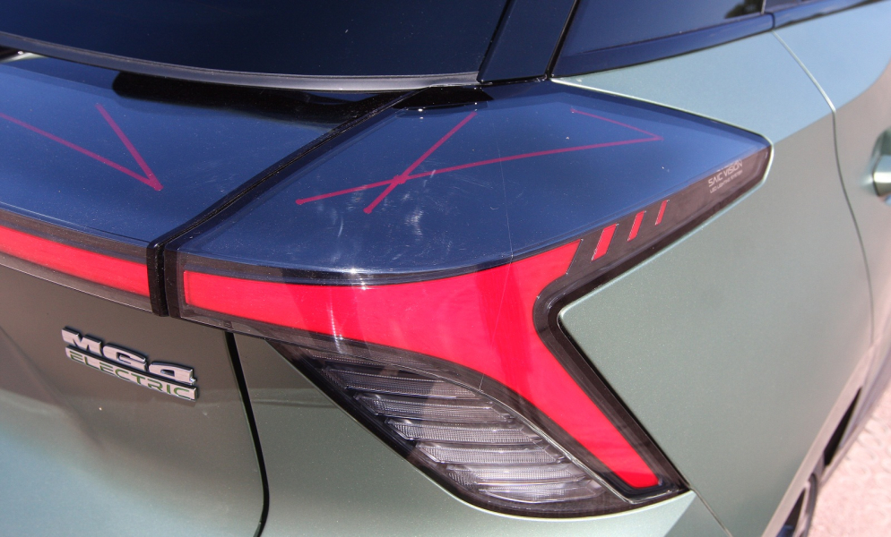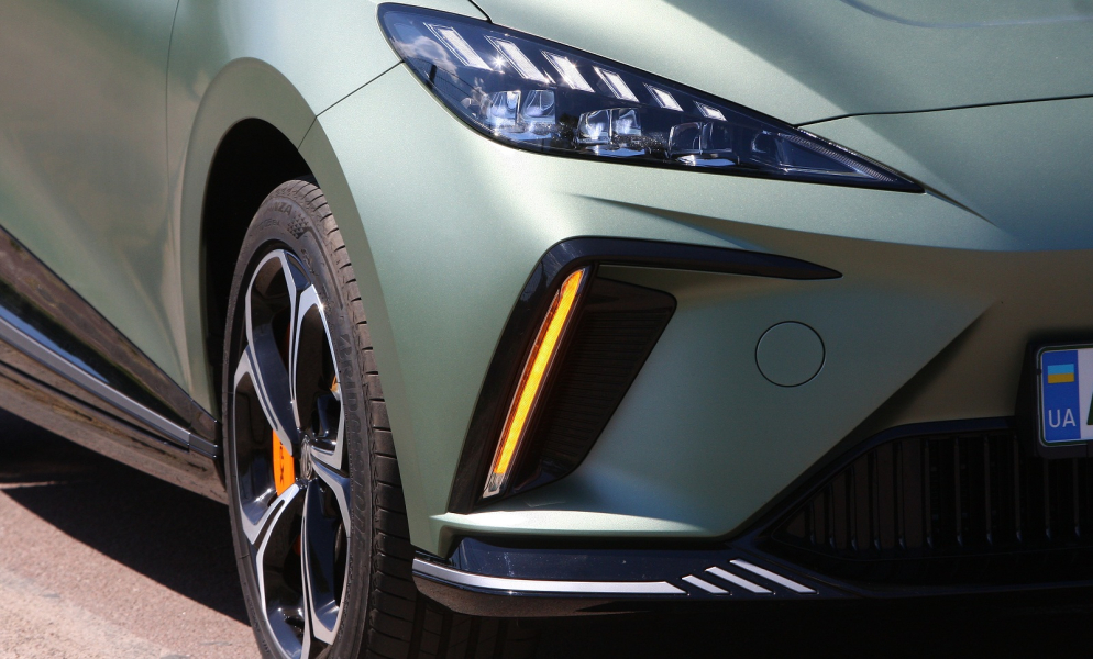 Утім, варто відзначити, що гранчастий дизайн MG4 EV вийшов напрочуд вдалим і навіть базовий варіант електрокара має динамічний вигляд. Виражений "ніс", стріловидні фари, ліхтарі з цікавим візерунком, оригінальний двосекційний спойлер на даху – хетчбек вийшов стильним, привабливим і самобутнім.