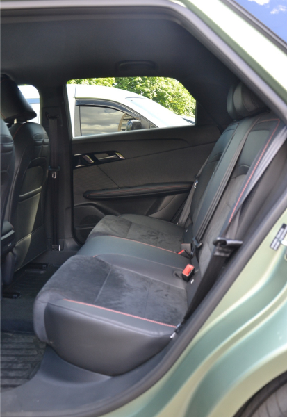 Другий ряд MG4 XPower виявився на диво просторим, за мірками хетчбеків С-класу. Пасажирам ростом 185 см місця для ніг та над головою вистачає. Ззаду є ще один роз’єм USB-C, а от дефлектори обдуву чи бодай підлокітник тут не передбачені.