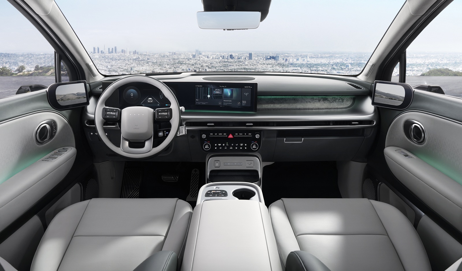 Кросовер Hyundai Ioniq 9 пропонують у версіях на 6 або 7 місць. У салоні на передній панелі встановлено два дисплеї. Об’єм багажника становить 620-2462 л, також є 88-літровий передній відсік.