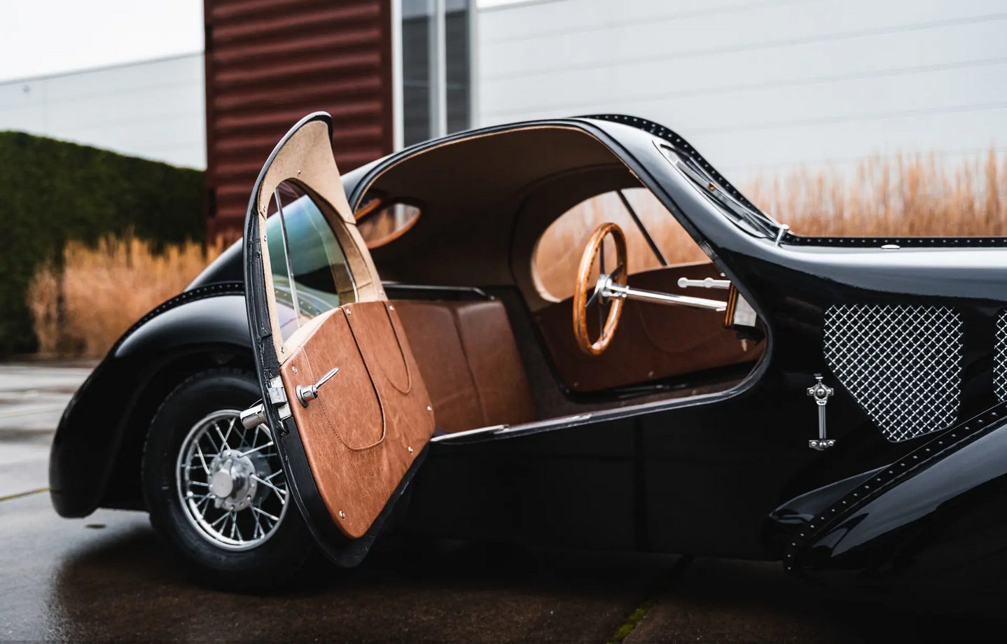 Знамените обтічне купе Bugatti 57SC Atlantic відтворили до найменших деталей. Авто вирізняється авангардним обтічним дизайном, а його двері відкриваються проти руху.