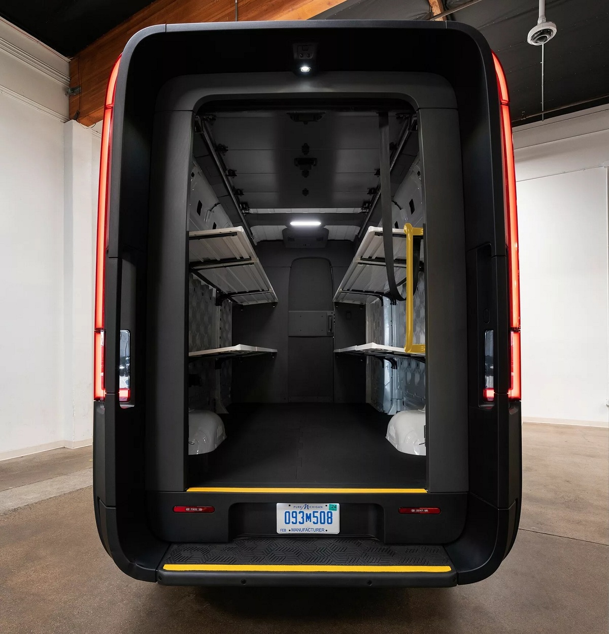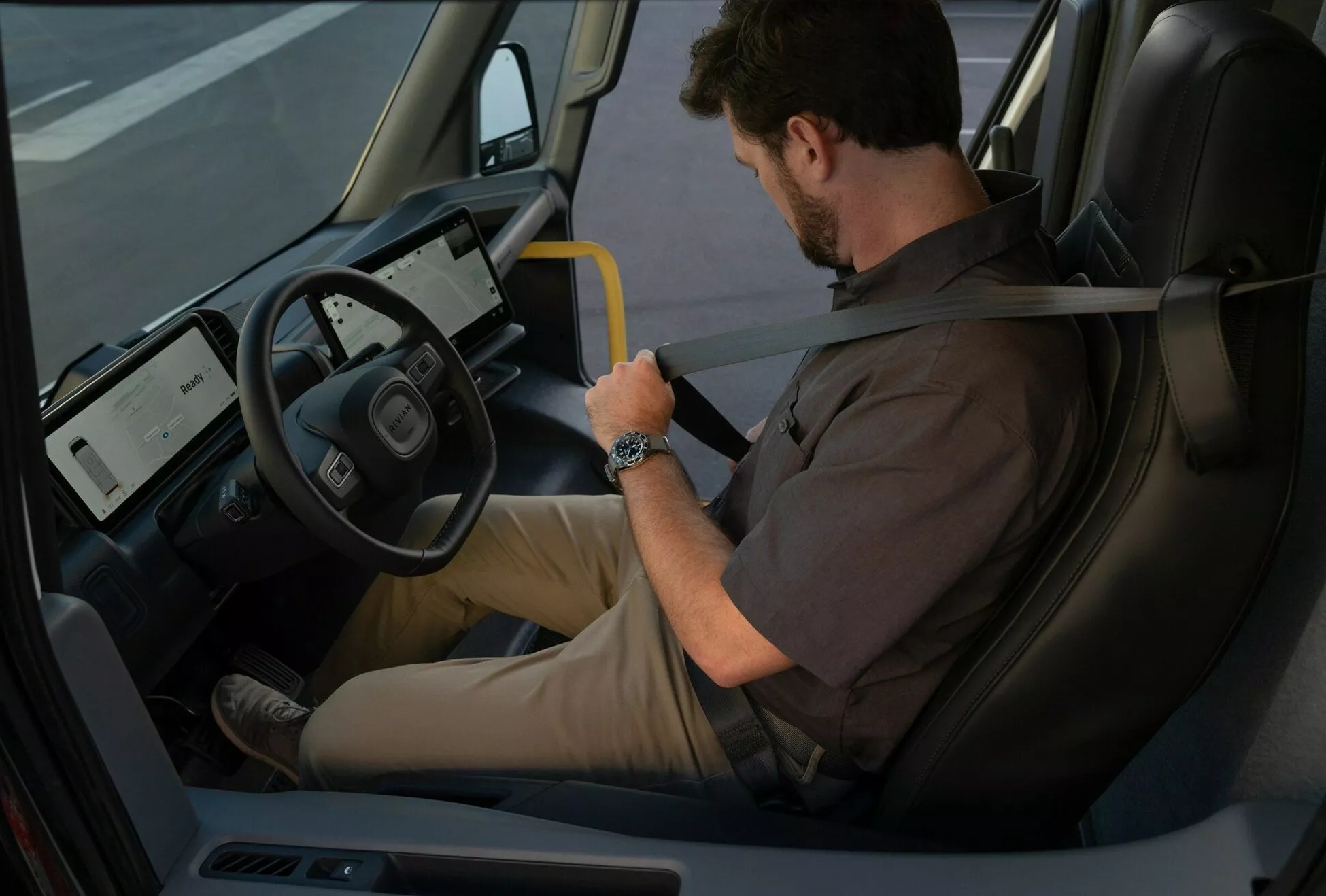 У салоні Rivian Delivery встановлено два дисплеї на передній панелі, а крісло водія оснащене підігрівом та вентиляцією. Крім того, є парктронік, камери кругового огляду, адаптивний круїз-контроль і набір систем безпеки.