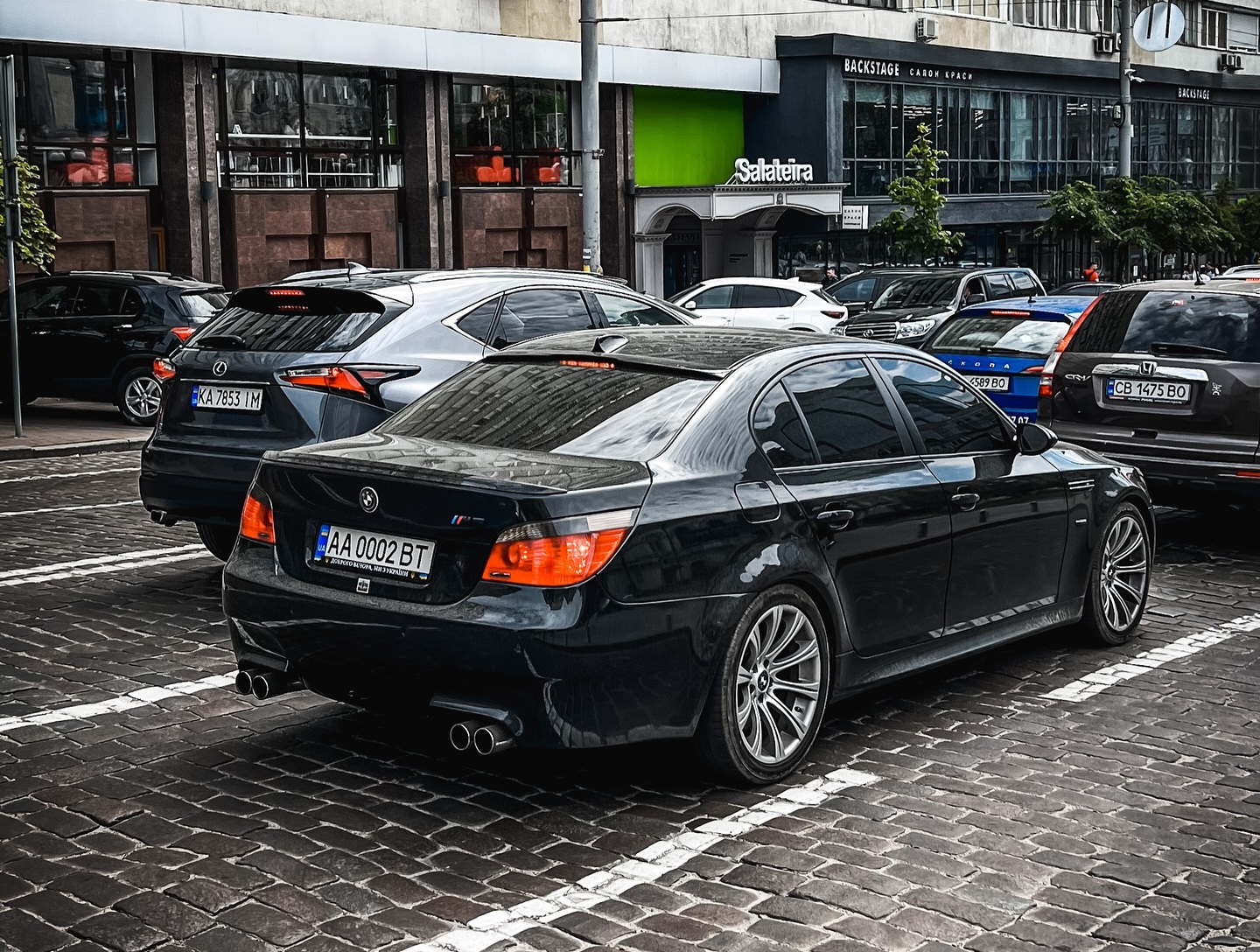 У Києві помітили заряджений седан BMW M5 покоління E60. Знамените спортивне авто із унікальним двигуном V10 є справжнім раритетом в Україні.