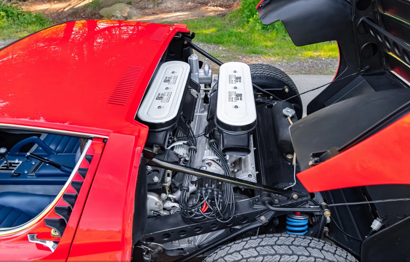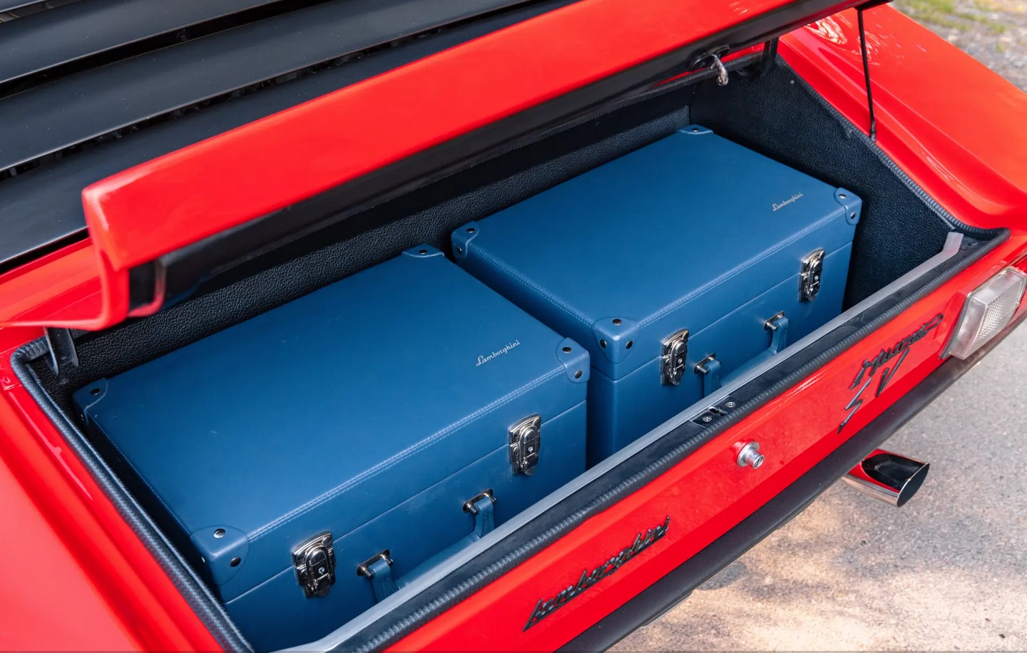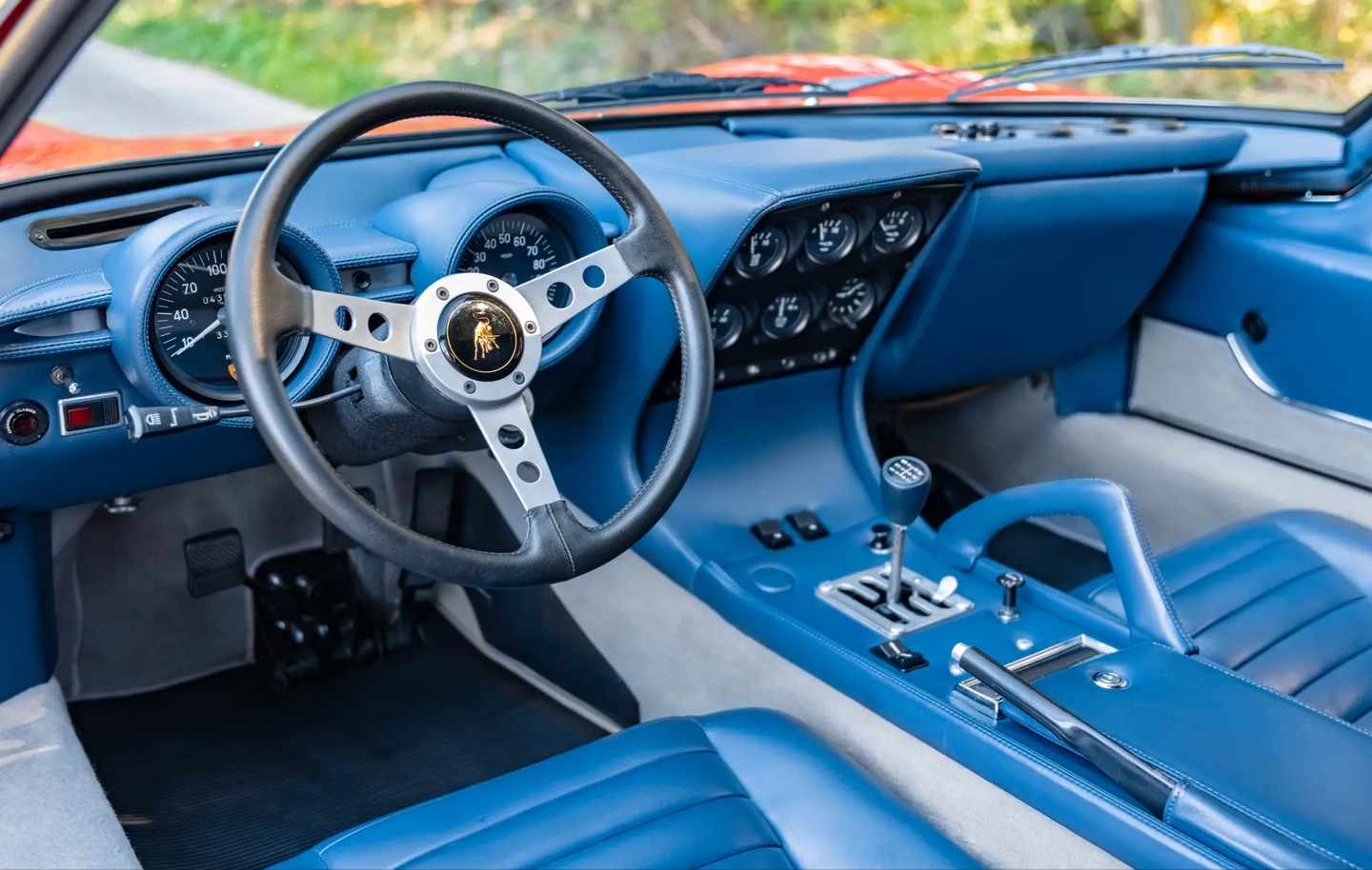 Lamborghini Miura SV пофарбований у червоний та золотистий кольори, а його салон оздоблений блакитною шкірою. Комплектація включає кондиціонер, електросклопідіймачі та аудіосистема, також є набір фірмового багажу від Lamborghini.