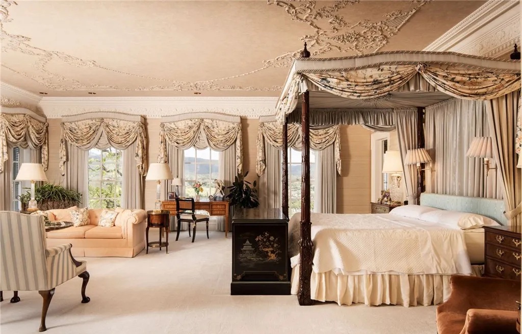 У шикарному будинку площею 1950 кв. м є 8 спалень, 11 ванних кімнат, дорогі вітальні та кілька терас. Крім того, на території маєтку збудовано басейн, сад, вертолітний майданчик, конюшні та тенісний корт.