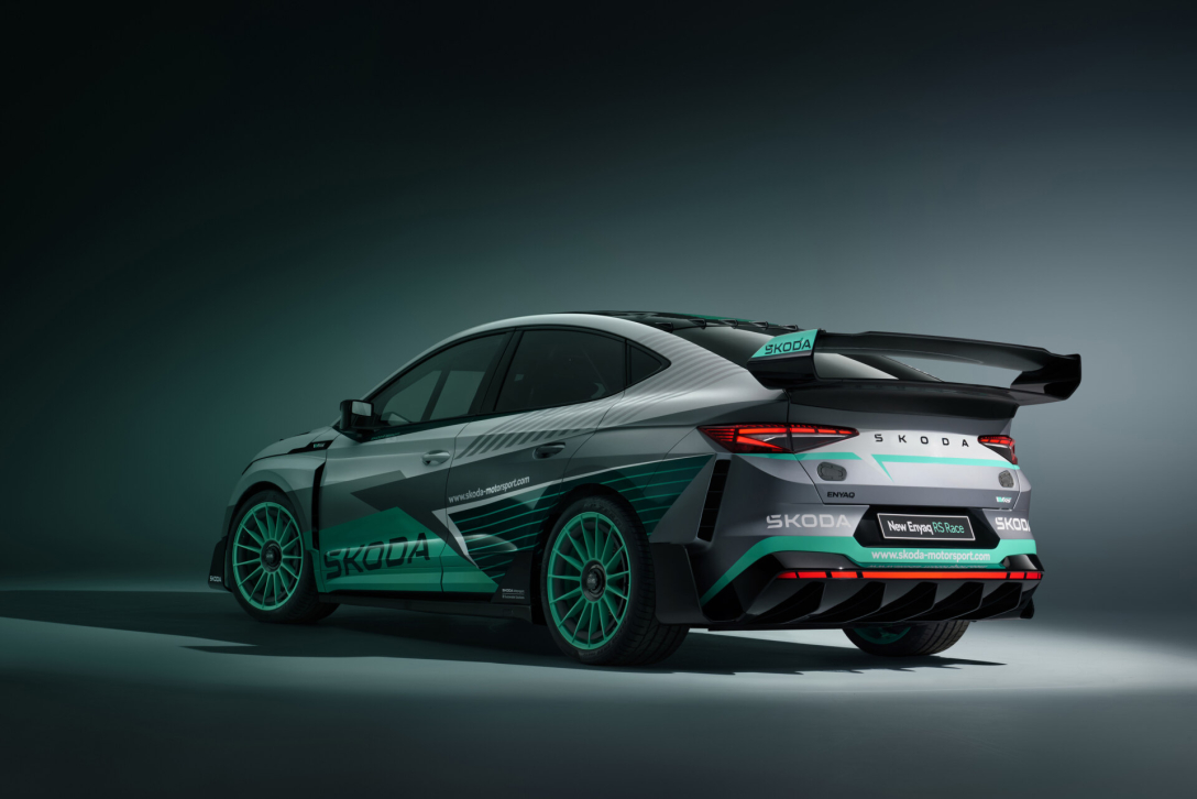 Електромобіль Skoda Enyaq занизили, а його крила серйозно розширили (на 116 мм). Також з’явилися обвіс, дифузор та велике антикрило.