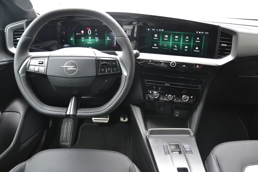 Перше, що впадає в очі у салоні Opel Mokka 2025 – нове кермо зі скошеним знизу ободом. Матеріали внутрішнього оздоблення дещо покращені, хоча і жорсткого пластику усередині все ж вистачає. Сидіння обшиті тканиною та екошкірою, а педалі прикрашені металевими накладками.
