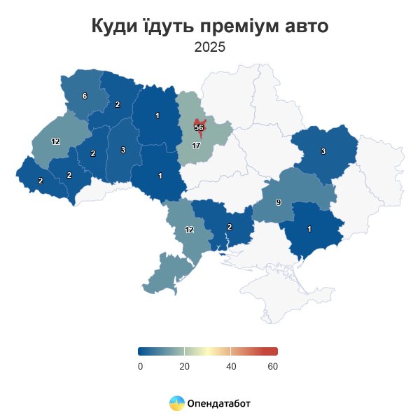 Найбільше преміальні авто купують у Києві (43%), Київській (13%), Одеській та Львівській (по 9%) областях. Примітно, що 47% із них – електрокари, 23% — гібриди, а 19% — бензинові моделі.