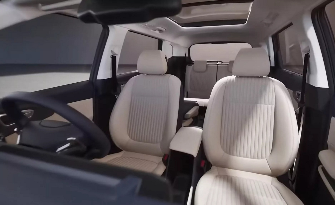 У салоні на передній панелі встановлено два 10,25-дюймових екрани. Сімейний мінівен Kia Carens пропонують у версіях на 6 та 7 місць, а об’єм його багажника становить 216 л із трьома рядами крісел, 645 л – із двома та 1164 л – із одним.