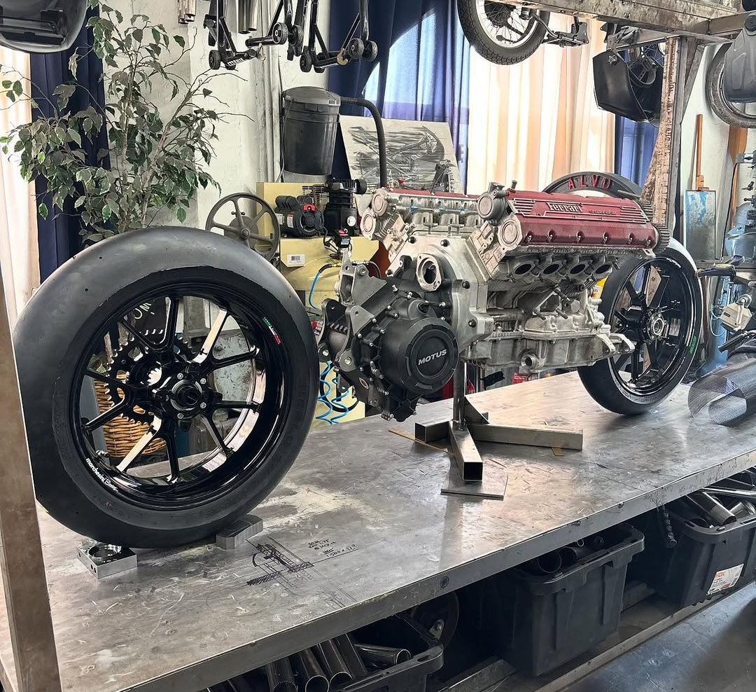 Американський конструктор вирішив збудувати спортбайк із високооборотним 3,5-літровим V8 від культового суперкара Ferrari F355 1995 року. Потужність двигуна збільшили з 380 до приблизно 400 сил. У парі з ним працює 6-ступінчаста механічна КПП. Також встановлено гучний кастомний вихлоп від SC Project.