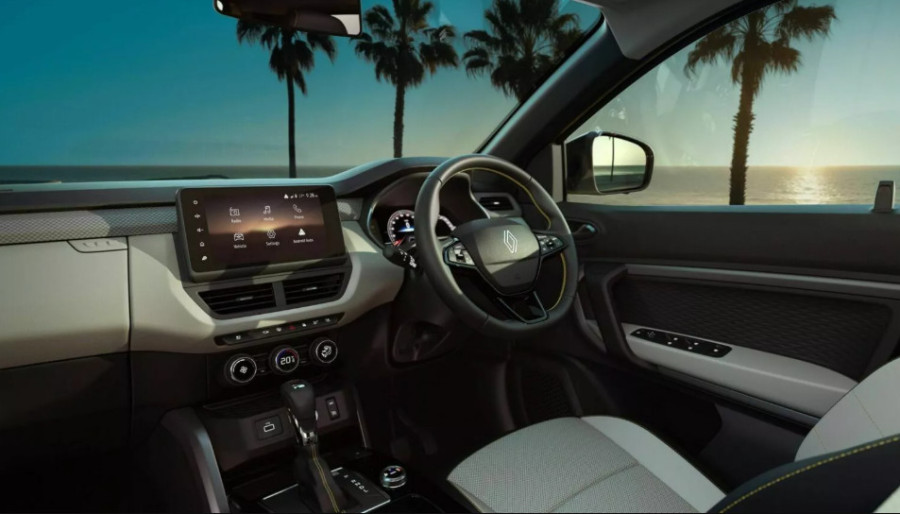 Салон також майже не зазнав змін, за винятком білої обробки панелі приладів та оновленої оббивки. Також Renault Kiger отримав найновішу емблему марки на кермі та покращену шумоізоляцію. В дорожчих комплектаціях 8-дюймовий екран інформаційно-розважальної системи отримав додаткові функції, такі як камера з оглядом на 360 градусів, аудіосистема Arkamys і бездротове заряджання. Також передні сидіння в комплектації Emotion мають вентиляцію.