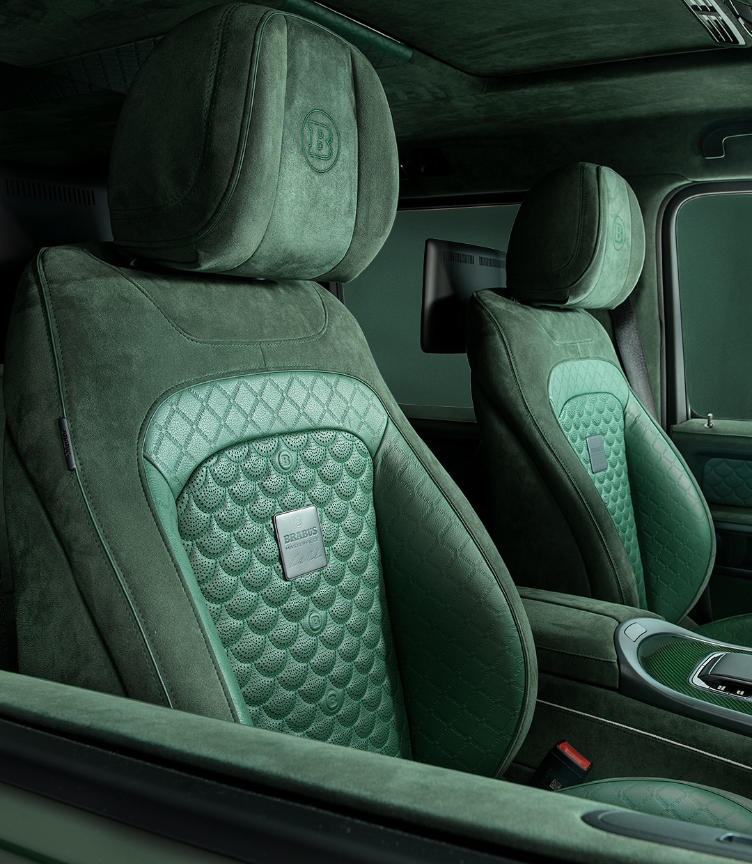 Салон "Гелендвагена" оздобили зеленими шкірою та замшею. Також додали карбонові вставки.