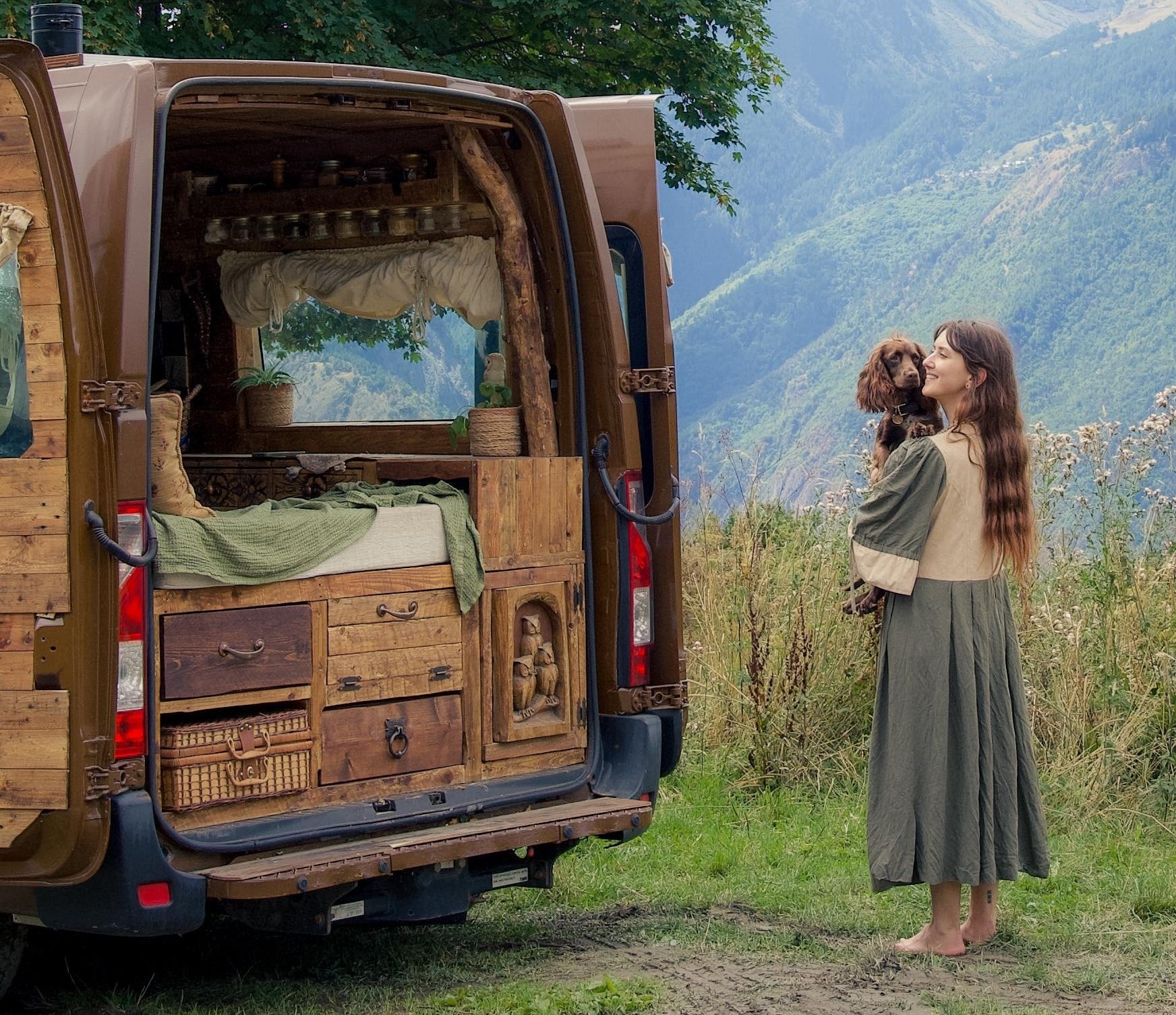Салон Vauxhall Movano оздоблений деревом, а всі меблі стилізовані під старовину. Усередині встановили численні шафи та полички, а під стелею підвісили посуд. Усі роботи Джессіка виконала разом зі своїм бойфрендом і не зверталася за допомогою до спеціалістів.