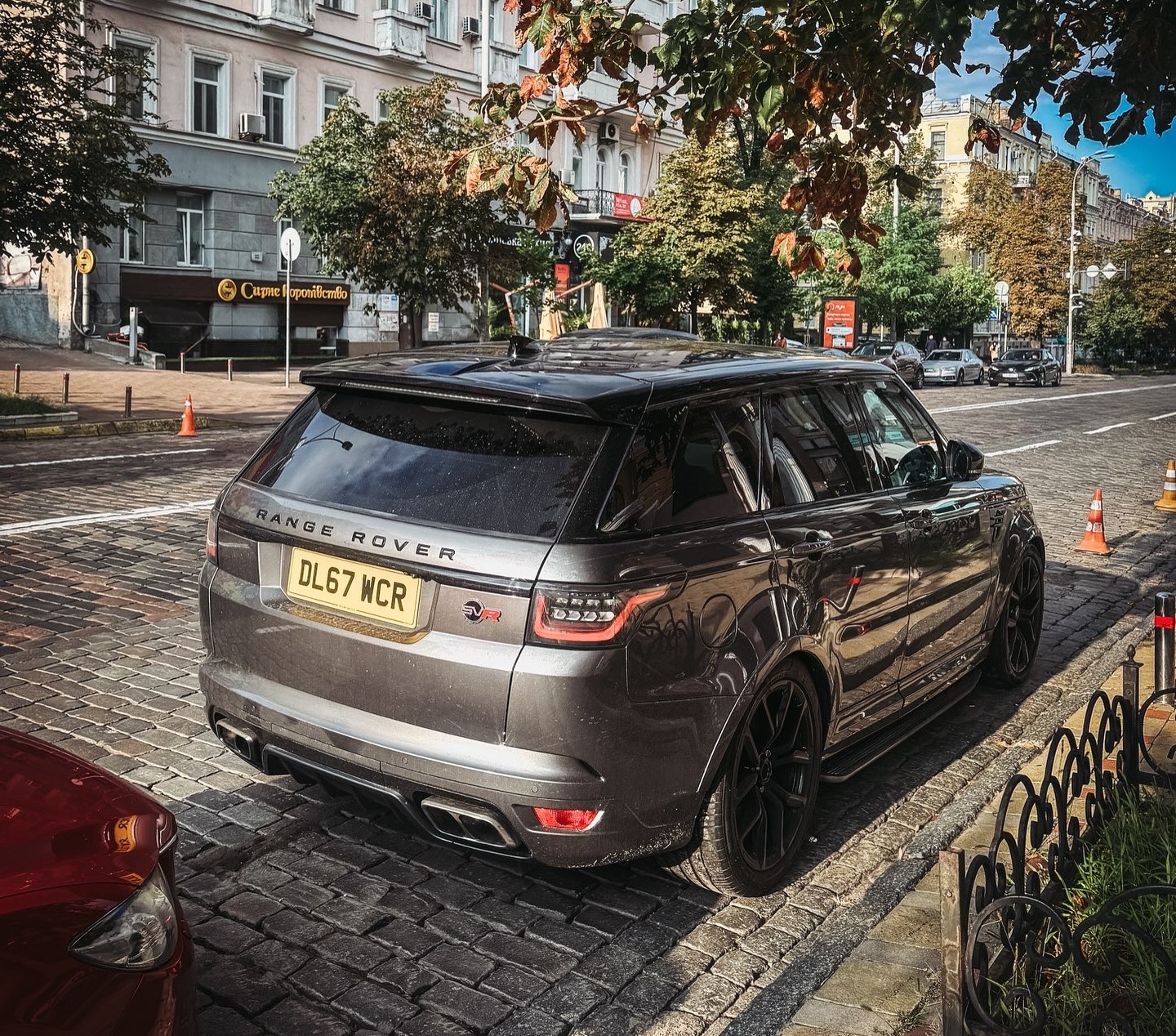 Конкретно цей Range Rover Sport SVR має британські номери, а його кермо розташоване праворуч. Оскільки розмитнити авто з правим кермом в Україні неможливо, то або до Києва завітали гості з Великої Британії, або ж це авто на "бляхах".