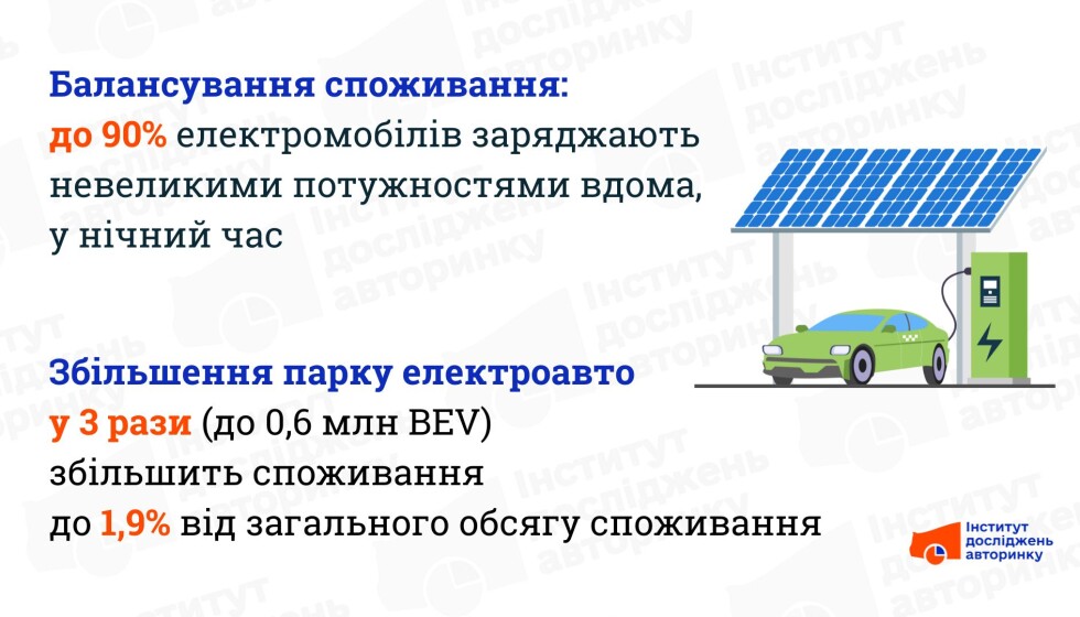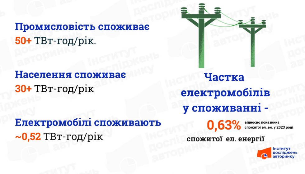 Отже, за рік всі електромобілі в Україні споживають лише 0,524 ТВт·год, тобто всього 0,63% від загальної кількості виробленої електроенергії. Для порівняння: на промисловість припадає 50 ТВт·год на рік, а на побутових споживачів – 30 ТВт·год.