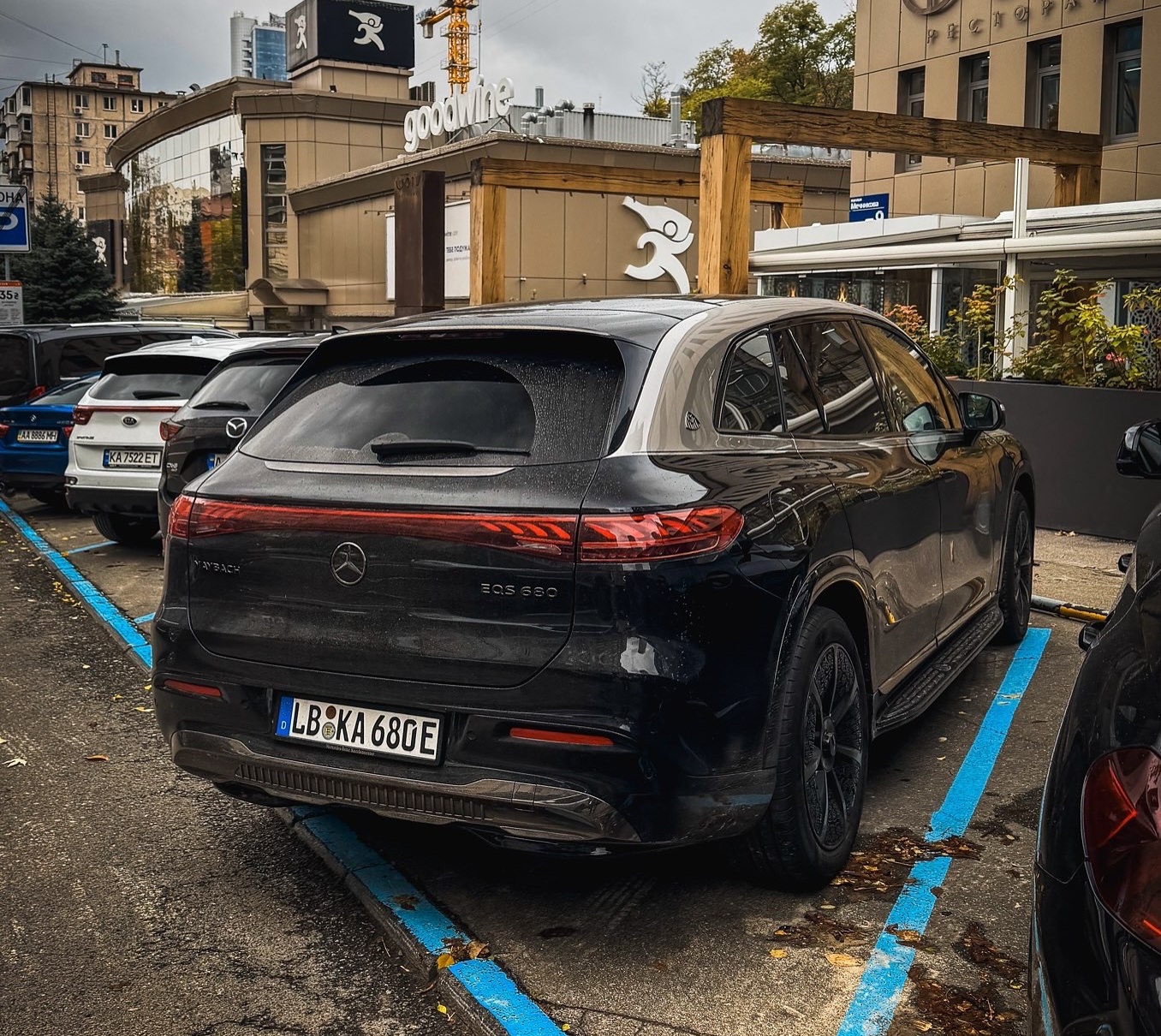Конкретно цей електричний кросовер Mercedes-Maybach EQS680 SUV має німецькі номери. Не виключено, що його не встигли розмитнити або ж це гості з Німеччини.