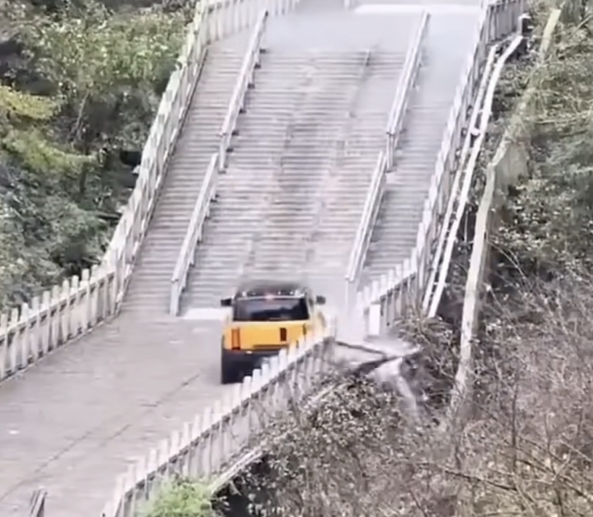 Утім, новий Chery Fulwin X3 L не спромігся подолати складну перешкоду. Проїхавши приблизно половину дистанції, кросовер забуксував на слизьких сходах, покотився донизу та врізався в огорожу.