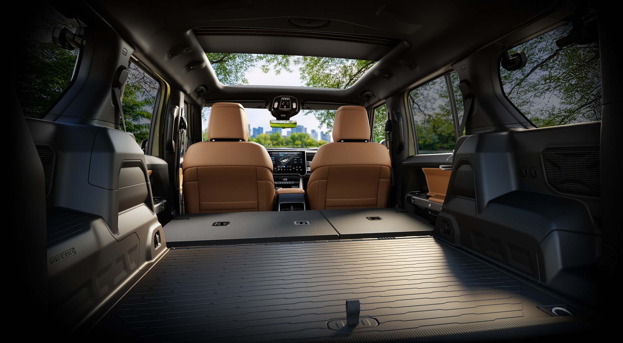 Об’єм багажника зі складеними задніми сидіннями становить 1866 л, також є 85-літровий передній відсік. Комплектація включає камери кругового огляду, навігацію та акустику Alpine.