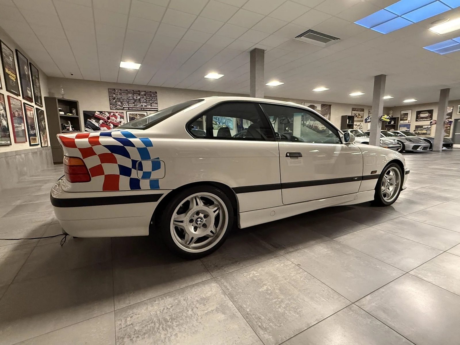 Авто пофарбоване в білий колір із графікою на боковинах, а салон BMW M3 E36 оздоблений шкірою Nappa. Комплектація включає 17-дюймові диски, двозонний клімат-контроль, круїз-контроль, підігрів сидінь, люк та касетну магнітолу.