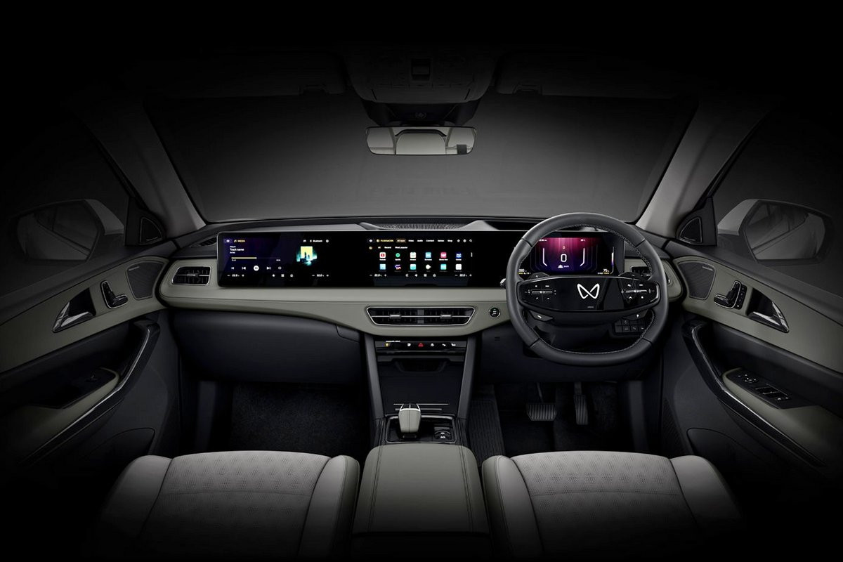 Недорогий електромобіль Mahindra доволі багато оснащений. Топові версії отримали проєкцію на лобове скло, панорамний дах, двозонний клімат-контроль, електропривід сидінь, вентиляцію крісел першого і другого ряду, акустику Harman Kardon, камери кругового огляду, монітори для задніх пасажирів.