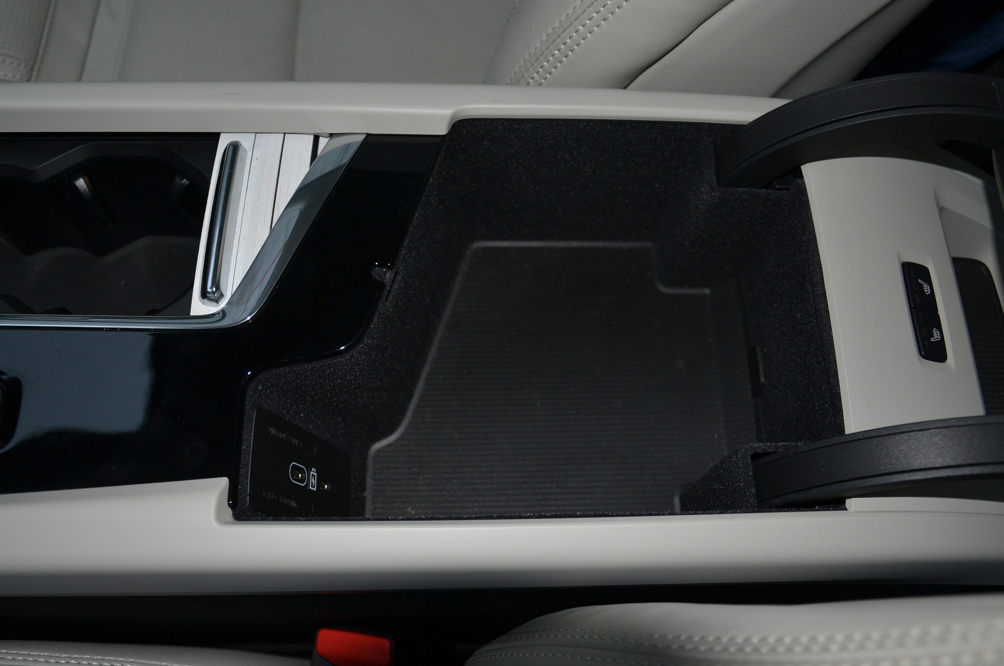 Нижче знайшлося місце для ніші з бездротовою зарядкою смартфона. Volvo XC60 має доволі місткий бардачок і широкі кишені у дверях, а от бокс у передньому підлокітнику мілкуватий.