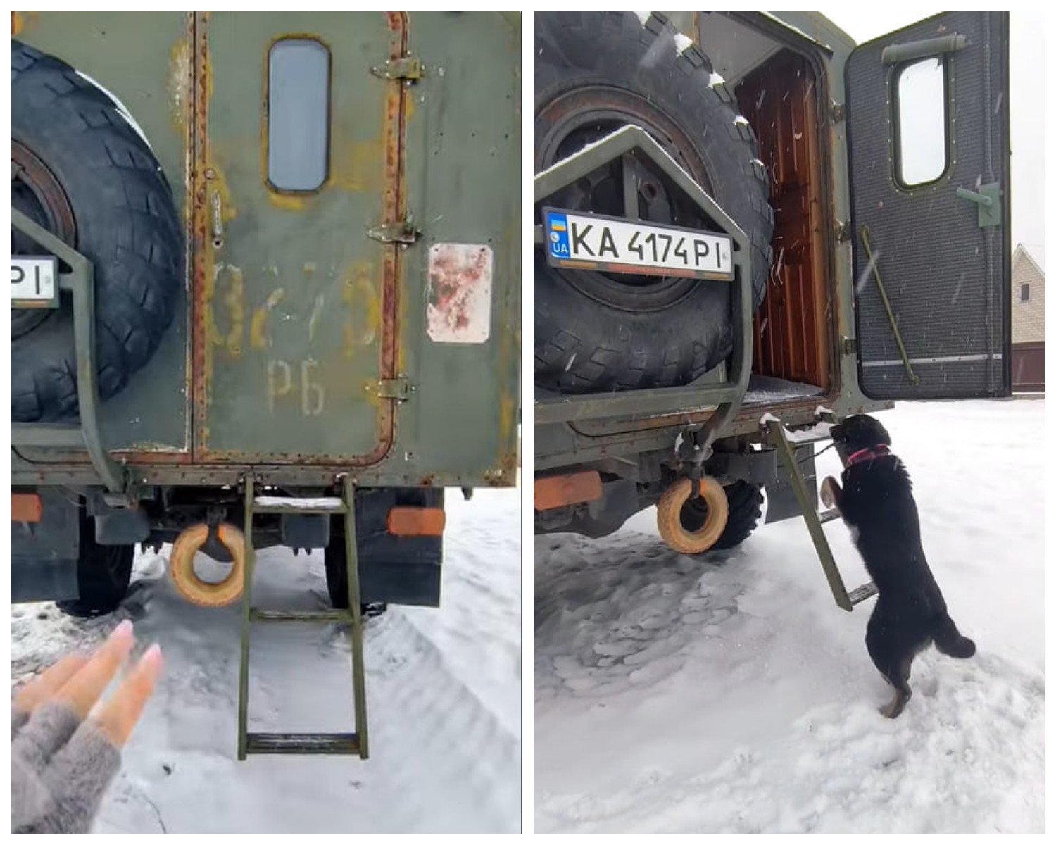 Колаж Фокус | вхід до будиночка на колесах у старому ГАЗ-66