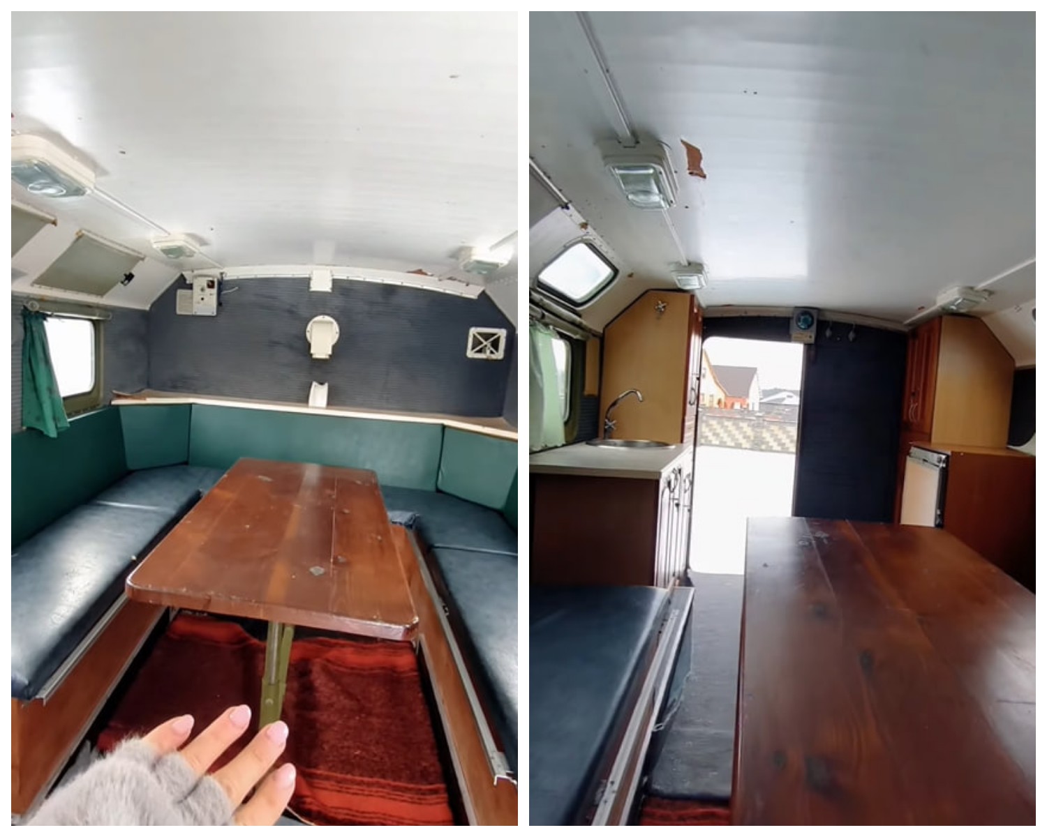 Колаж Фокус | ліжко та стіл у будинку на колесах