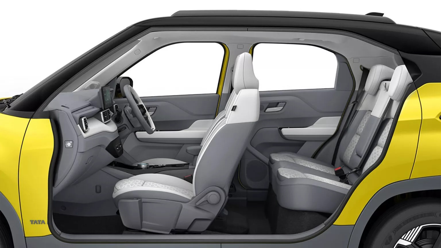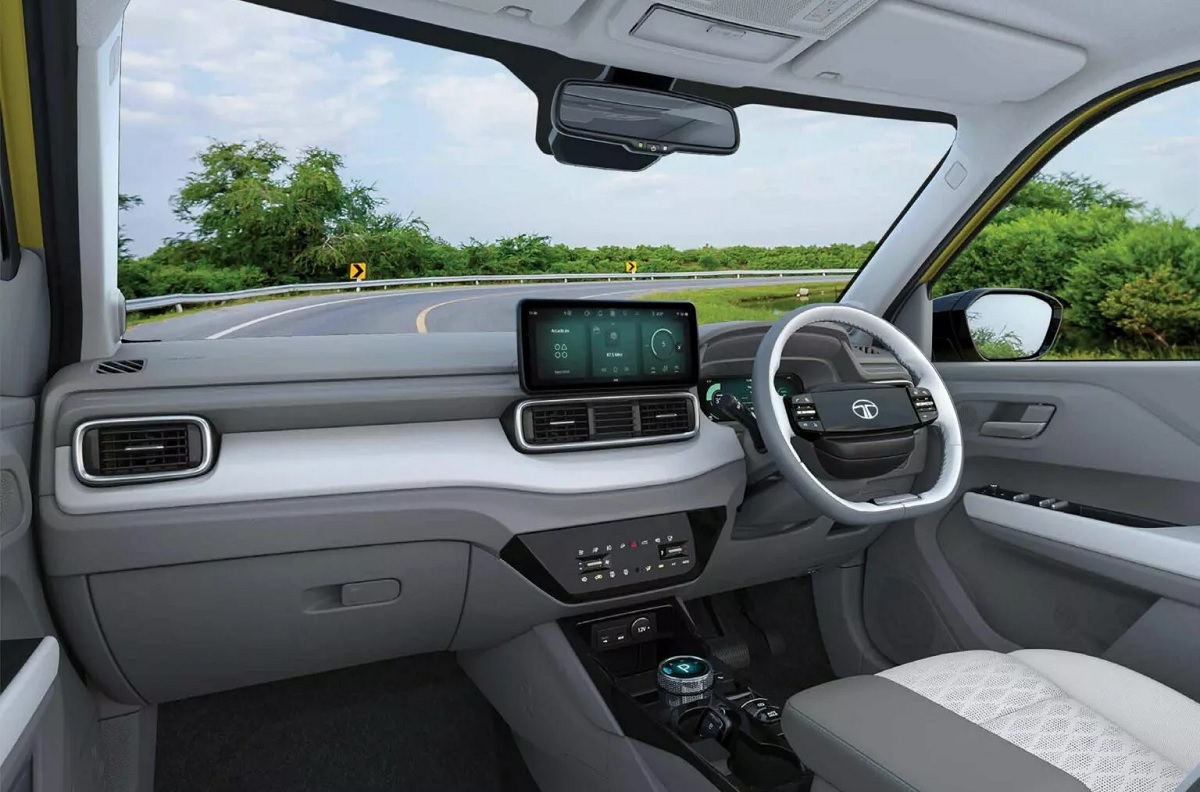 Салон Tata Punch EV не зазнав змін. На передній панелі встановлені два 10,25-дюймових екрани та сенсорні кнопки. Електрокросовер має 366-літровий задній та 14-літровий передній багажники. Топовий варіант оснащений люком, вентиляцією сидінь, камерами кругового огляду, круїз-контролем, моніторингом "сліпих" зон і бездротовою зарядкою для смартфонів.