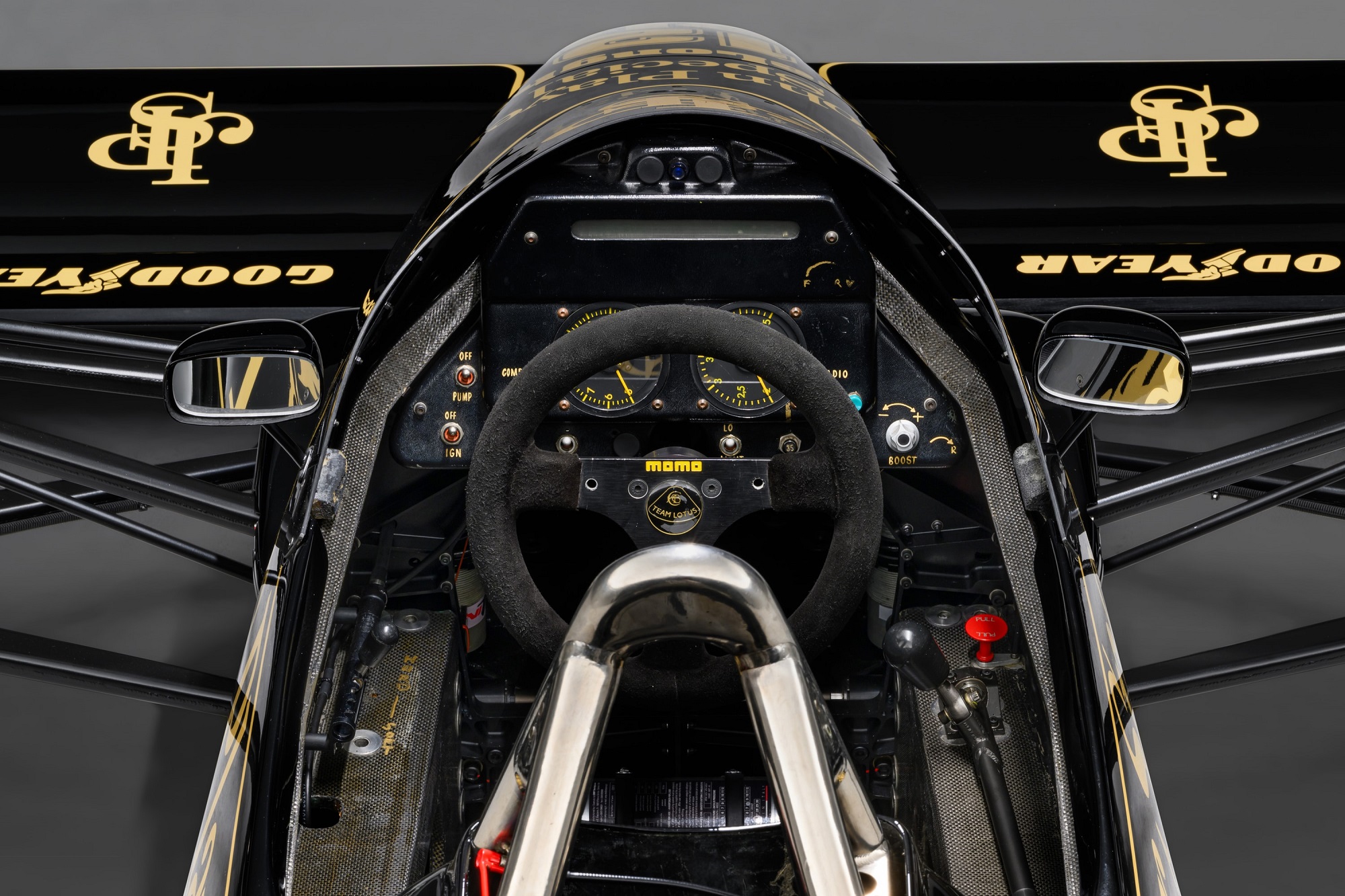 Болід Lotus 98T — остання модель команди з двигуном Renault. 1,5-літровий V6 твін-турбо розвиває 900 к. с. при 12 500 об/хв у гоночному налаштуванні та 1200 сил — у кваліфікаційній специфікації. Авто Айртона Сенни виготовлене з карбону та алюмінію і важить лише 540 кг.