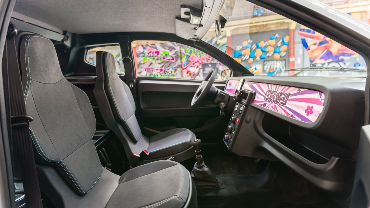 В оздобленні салону Aixam Easy використані змінні панелі з різноманітними зображеннями та візерунками. Авто має крупні кнопки, круглий селектор КПП і невеликий цифровий щиток приладів.