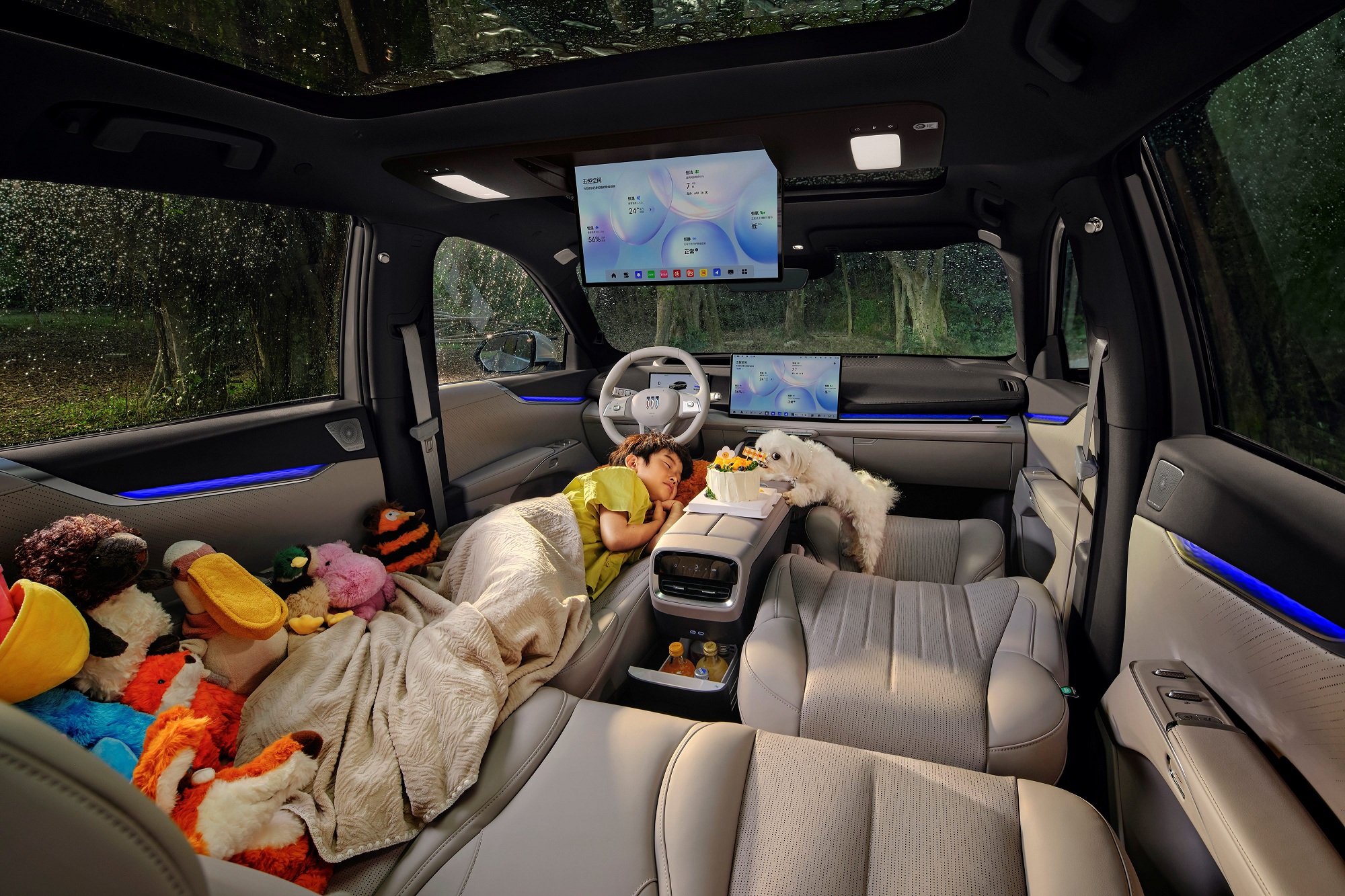 У салоні Buick Electra E7 встановили вузький цифровий щиток приладів та центральний 15,6-дюймовий тачскрін, також є проєкція на лобове скло. Передні крісла розділені високою консоллю. Об’єм багажника становить 650-1789 л.