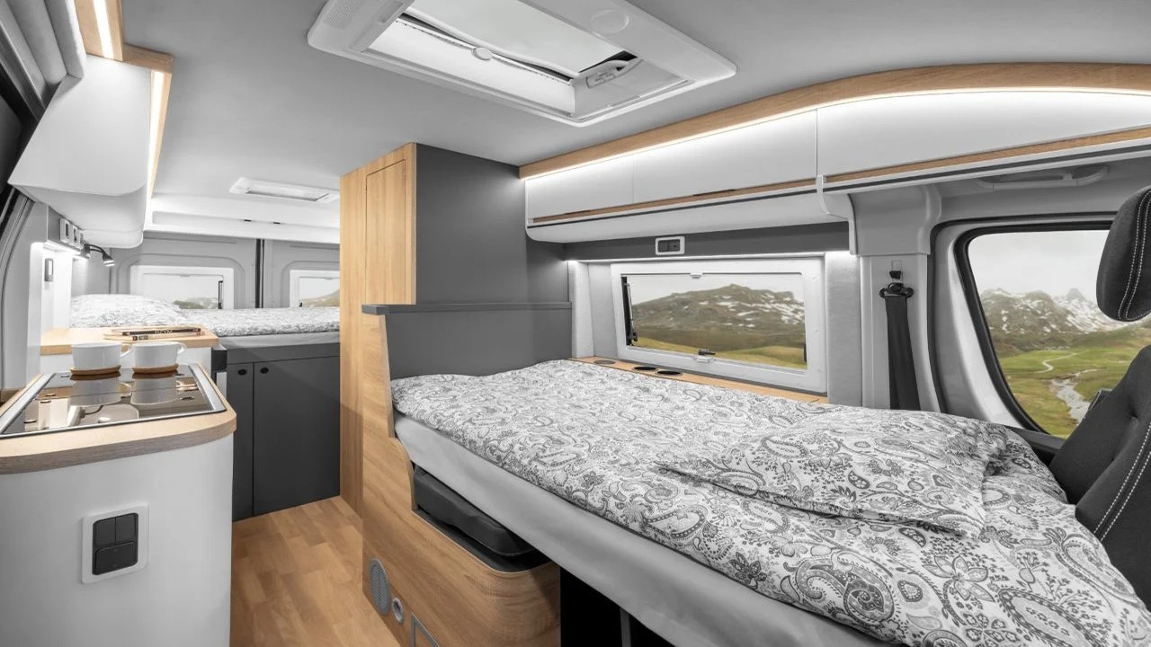 У салоні Toyota Proace Max встановили два ліжка та численні шафи. Також з’явилися розкладний стіл та поворотні сидіння.