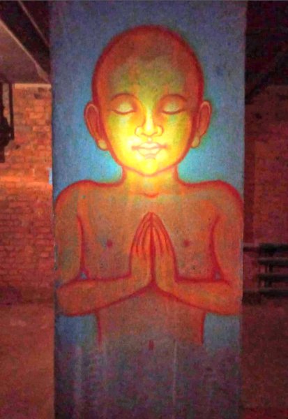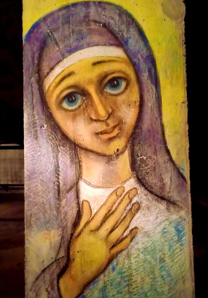 Бетонні стіни одного з київських бомбосховищ віднедавна покриті різнобарвними малюнками. Під звуки безперервної канонади їх створила Лана Овчиннікова, художниця, скульпторка по дереву з Києва. Серед робіт — образи Богоматері, Будди, української дівчини з калиною. Все це — спроба заглушити біль від жахіть війни, бажання вимолити порятунок для України.