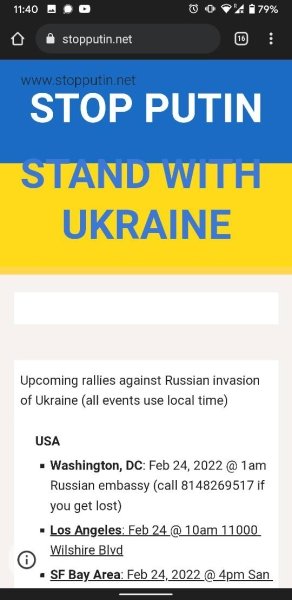 На сайті stopputin.net можна зазначити, де і коли планується акція протесту проти воєнних дій РФ та території України.